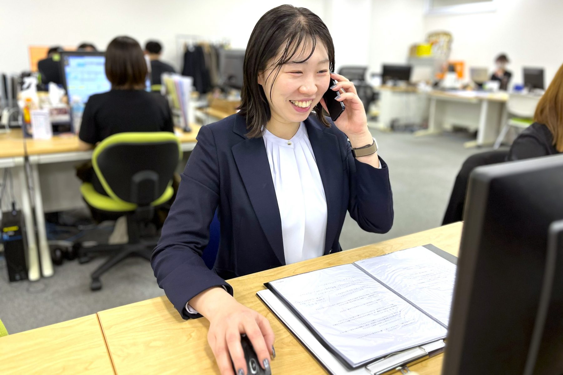 リストをもとに電話をかけ、アポイント獲得を目指します。未経験でも先輩のサポートがあるので、安心して挑戦できる環境です。